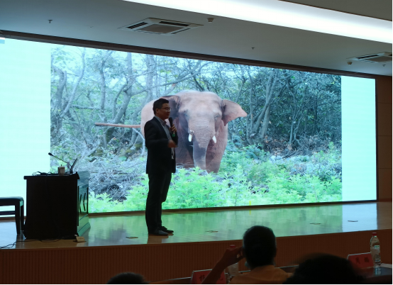 讲座邀请国家林业和草原局亚洲象研究中心主任陈飞作了题为《保护亚洲象 促进生物多样性保护与发展》的专题报告。讲座中,陈飞以COP15大会盛况介绍引入,以北移亚洲象群为例,向大家介绍了亚洲象与非洲象的区别、云南亚洲象的分布、北移亚洲象的活动情况,以及一直以来国家林业和草原局亚洲象研究中心开展的亚洲象保护管理亟需基础应用研究。同时,通过国家公园生态文明建设及COP15大会内容介绍,重点讲述了如何促进生物多样性保护与发展。