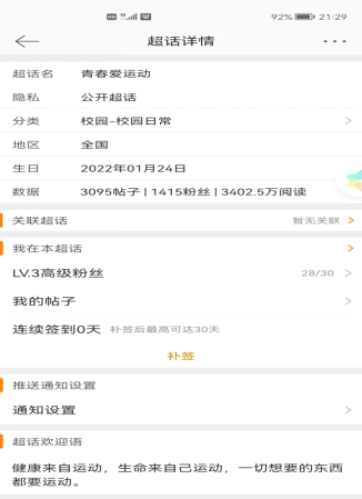 活动的主要目的是鼓励学生在微博超话社区带话题发微博打卡,坚持每天锻炼,以此来激励学生们锻炼的热情,在疫情防控大背景下,通过坚持运动锻炼,提升广大学生自身免疫力和身心健康。