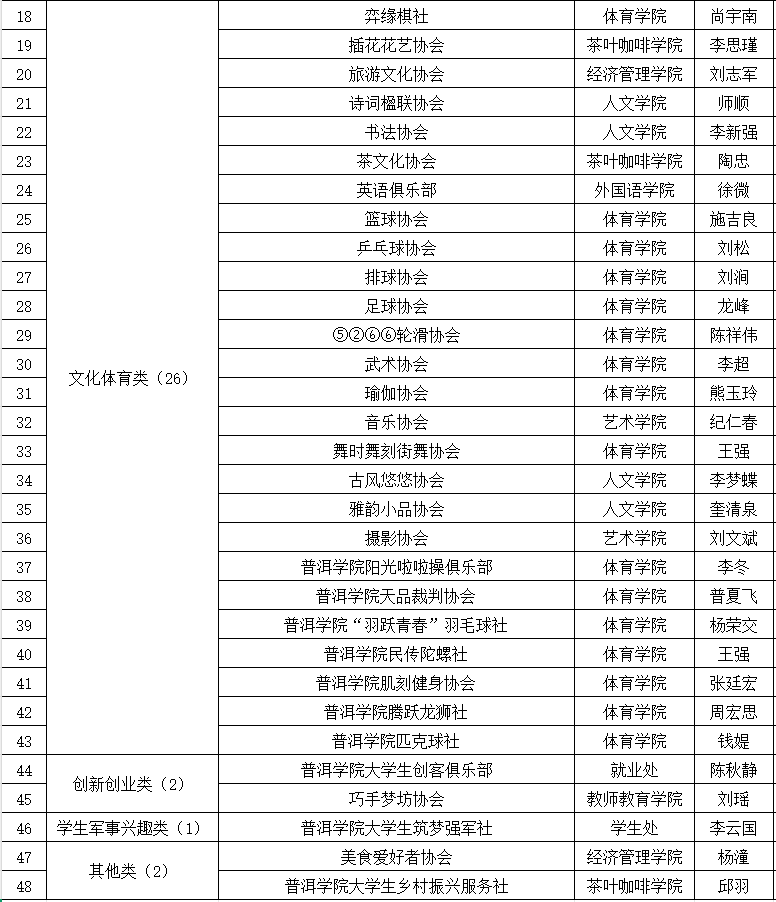 文化体育类、创新创业类等社团。
