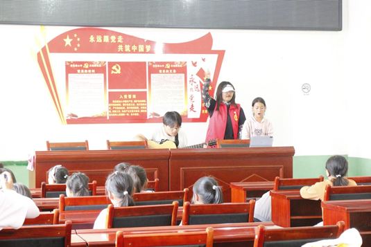 “我们是共产主义接班人,继承革命先辈的光荣传统......”从一个个充满童真孩子的口中唱出,他们用这首歌欢迎我们的到来,我们也为他们唱了一首“我们是五月的花海,用青春拥抱时代......”他们问:“为什么这首歌和少先队员队歌这么像?”队员们解释道:“因为现在作为少先队员的小朋友们就是共青团的预备队员!”他们若有所思地点点头。