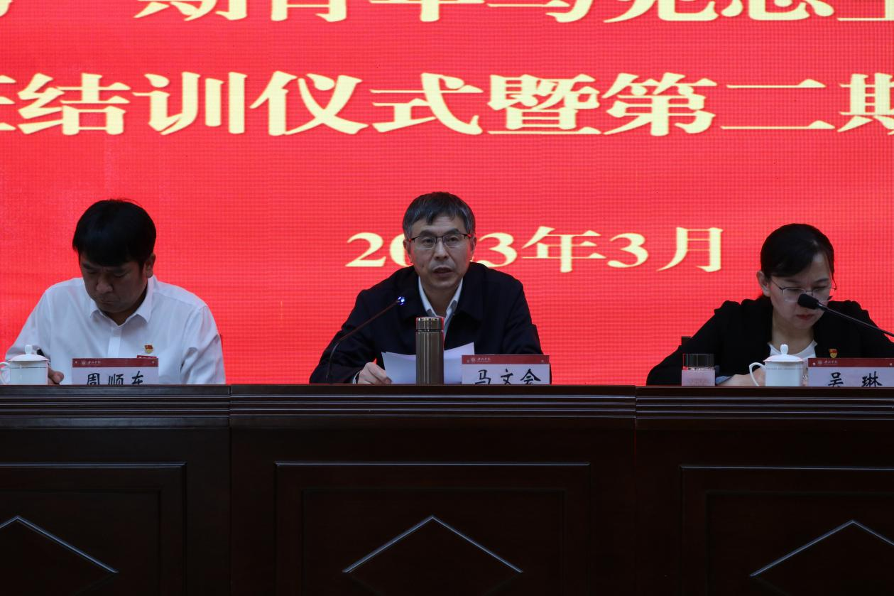 2023年3月31日,学校举行第一期青年马克思主义者培养工程培训班结训仪式暨第二期开班仪式。党委副书记、院长马文会出席并讲话,党委副书记吴琳主持会议,党委委员、党委宣传部部长周顺东,学工部、校团委负责人,以及各二级学院党总支书记、团总支书记、副书记、全体专职辅导员,青马班第一期、第二期学员参加仪式。